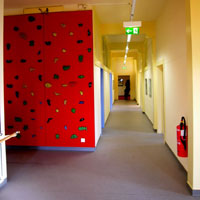 Bürogebäude der ehemaligen Bülachguss AG. Sanierung und Renovation unter Einhaltung der strengen feuerpolizeilichen Vorschriften. Aus den tristen, dunklen, grauen Büroräumen sind helle, bunte und kinderfreundliche Räume gestaltet worden.