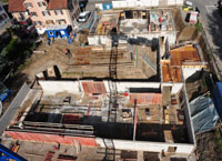 Denkmalgeschütztes Flarz-Ensemble. Abbruch der inneren Bauteile. Neugestaltung der Fassaden in Absprache mit der Baubehörde.