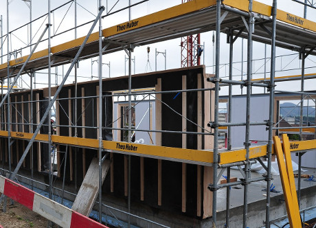 Beginn Holzelementbau ab Decke über Kellergeschoss