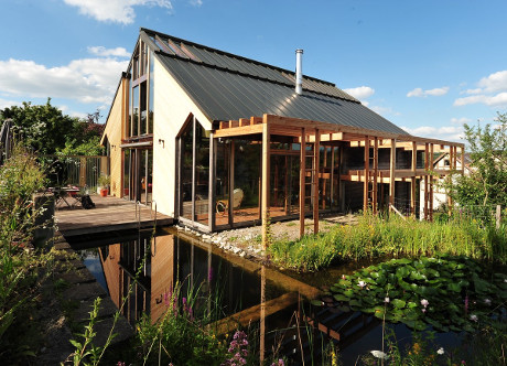 Ansicht Süd-West; neue Pergolen in Lärche massiv