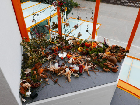 Herbst-Arrangement im nun windberuhigten Treppenhaus