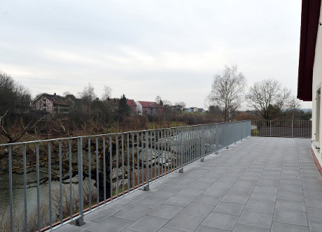 Ausblick von der Terrasse nach Andelfingen und auf die beruhigende Flusslandschaft.